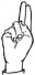 На ћирилици написано БОГИЊА ВУКИЧЕВИЋ састоји се из 15 слова [?]. Исписано ћириличном једноручном азбуком за глувонеме:
